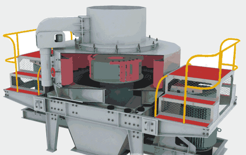 物料由進(jìn)料斗進(jìn)入制砂機(jī),經(jīng)分料器將物料分成兩部分,一部分由分料器中間進(jìn)入高速旋轉(zhuǎn)的葉輪中,在葉輪內(nèi)被迅速加速,其加速度可達(dá)數(shù)百倍重力加速度,然后以60-70米/秒的速度從葉輪三個(gè)均布的流道內(nèi)拋射出去,首先同由分料 器四周自收落下的一部分物料沖擊破碎,然后一起沖擊到渦支腔內(nèi)物料襯層上,被物料襯層反彈,斜向上沖擊到渦動(dòng)腔的頂部,又改變其運(yùn)動(dòng)方向,偏轉(zhuǎn)向下運(yùn)動(dòng),從葉輪流道發(fā)射出來(lái)的物料形成連續(xù)的物料幕。這樣一塊物料在渦動(dòng)破碎腔內(nèi)受到兩次以至多次機(jī)率撞擊 、磨擦和研磨破碎作用。被破碎的物料由下部排料口排出。和循環(huán)篩分系統(tǒng)形成閉路,一般循環(huán)三次即可將物料破碎成20目以下。在整下破碎過(guò)程中,物料相互自行沖擊破碎,不與金屬元件直接接觸,而是與物料襯層發(fā)生沖擊、磨擦而粉碎,這就減少了角污染,延長(zhǎng)機(jī) 械磨損時(shí)間。渦動(dòng)腔內(nèi)部巧妙的氣流自循環(huán),降低了粉塵污染。